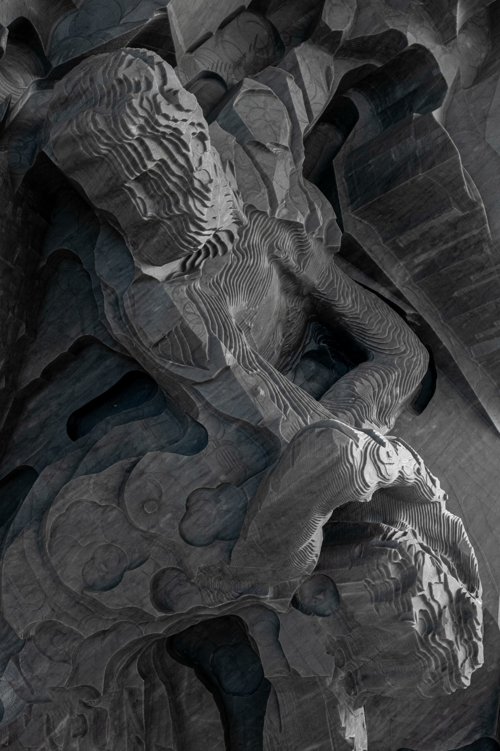 Unfinished sculpture variation of Giambologna’s masterpiece Hercules and Nessus carved out of marble via algorithmic-robotic means. The sculpture, left unfinished, documents the computational process, celebrating algorithmic aesthetics and new robotic sets of computational gestures.