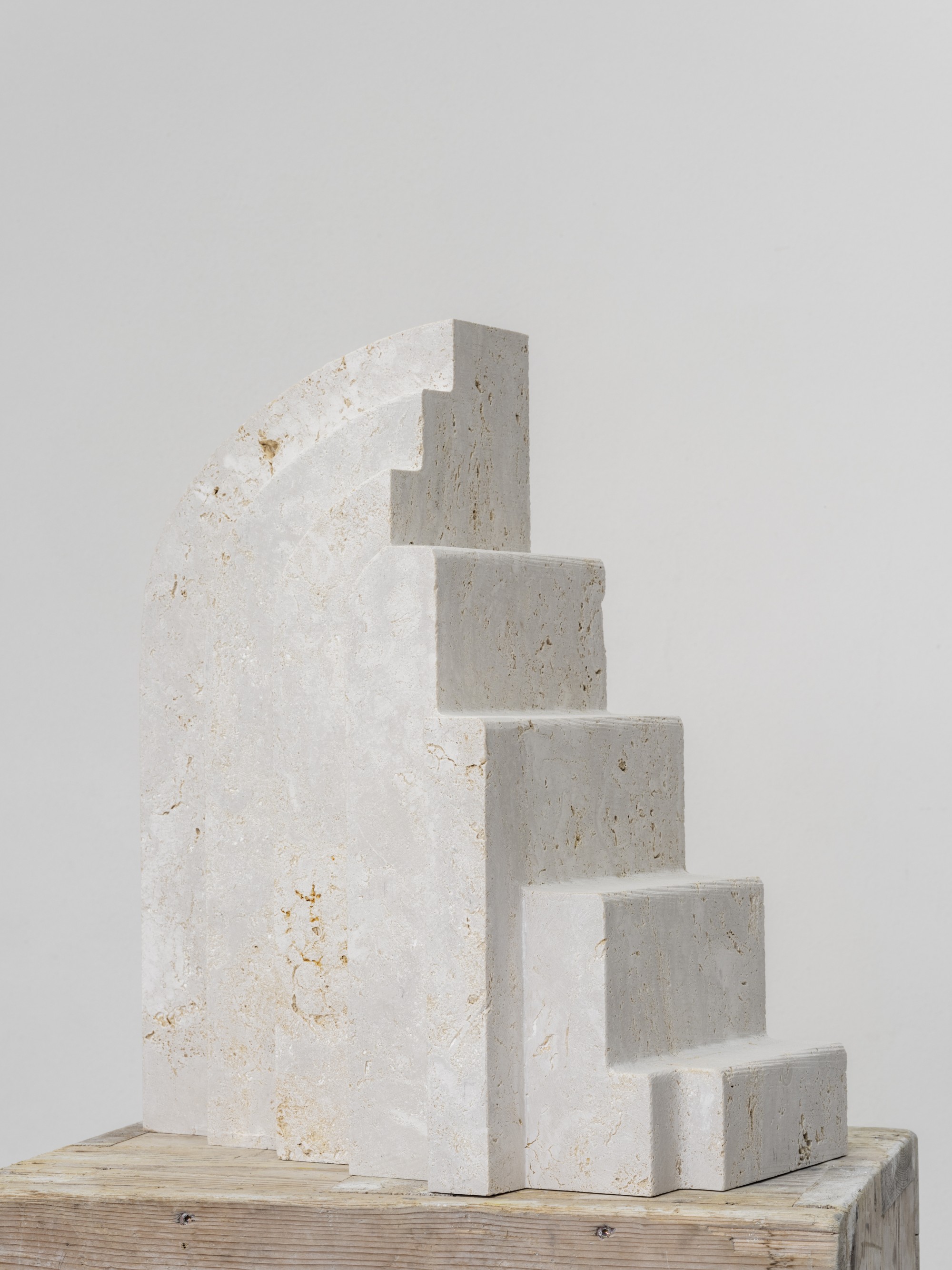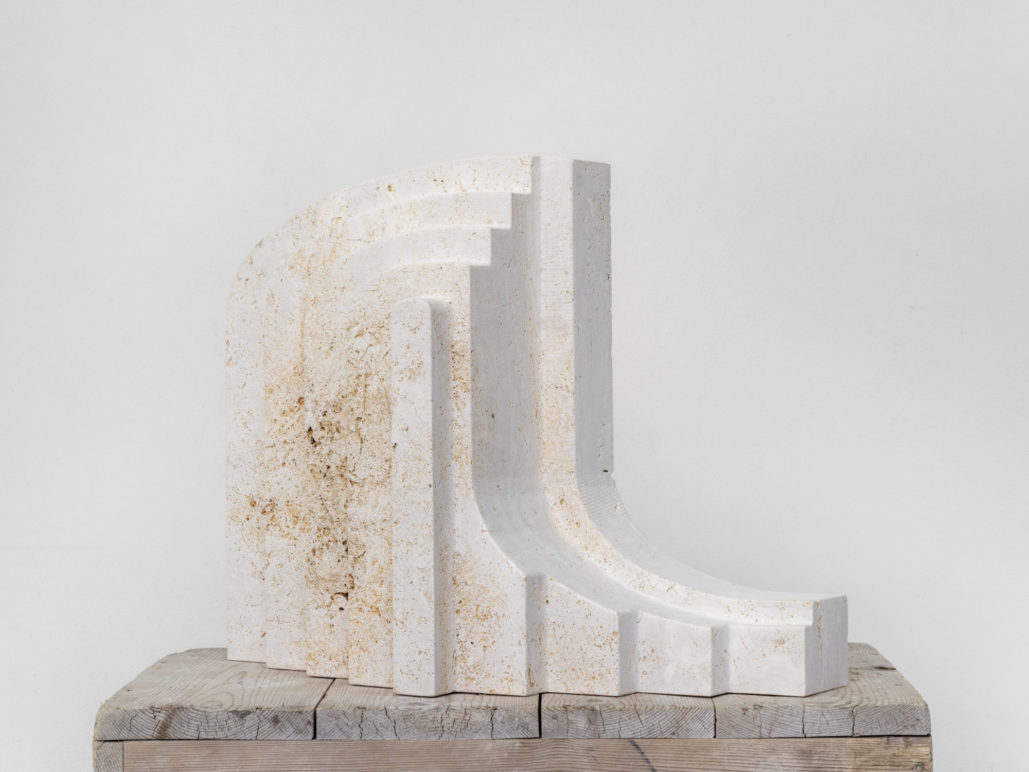 Deliberate imperfections evoke the passage of time, while distorted forms challenge gravity, generating tension between past and future, solidity and movement. Travertine—an emblem of Rome’s architectural legacy—becomes a medium for experimentation, bridging tradition and reinvention. The sculptures invite viewers to experience the city’s history through a radical, visionary lens, where light, shadow, and texture transform classical forms into a contemporary dialogue.